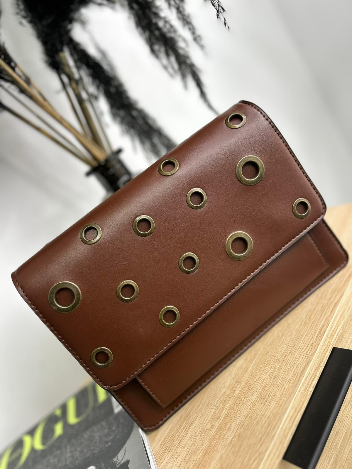 BOLSO CUADRADO TACHAS CON ASA LARGA.