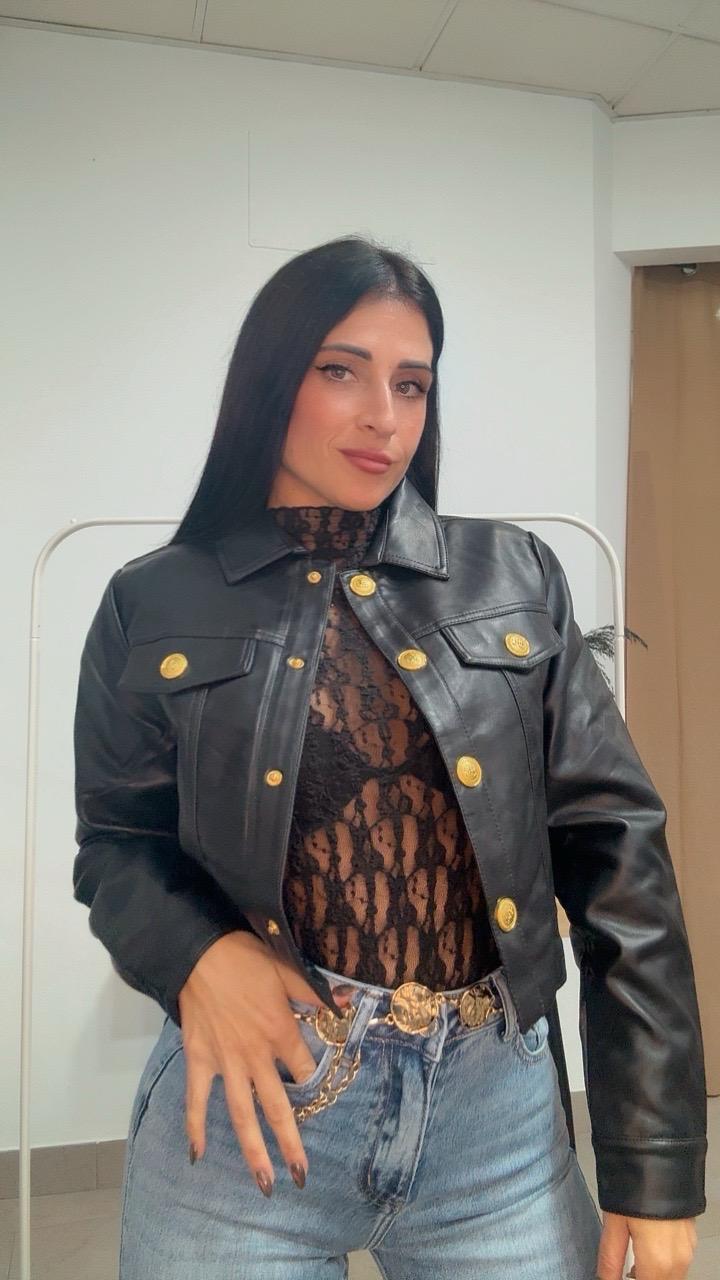 POLIPIEL,CORTE POR LA CINTURA BOTONES DORADOS.