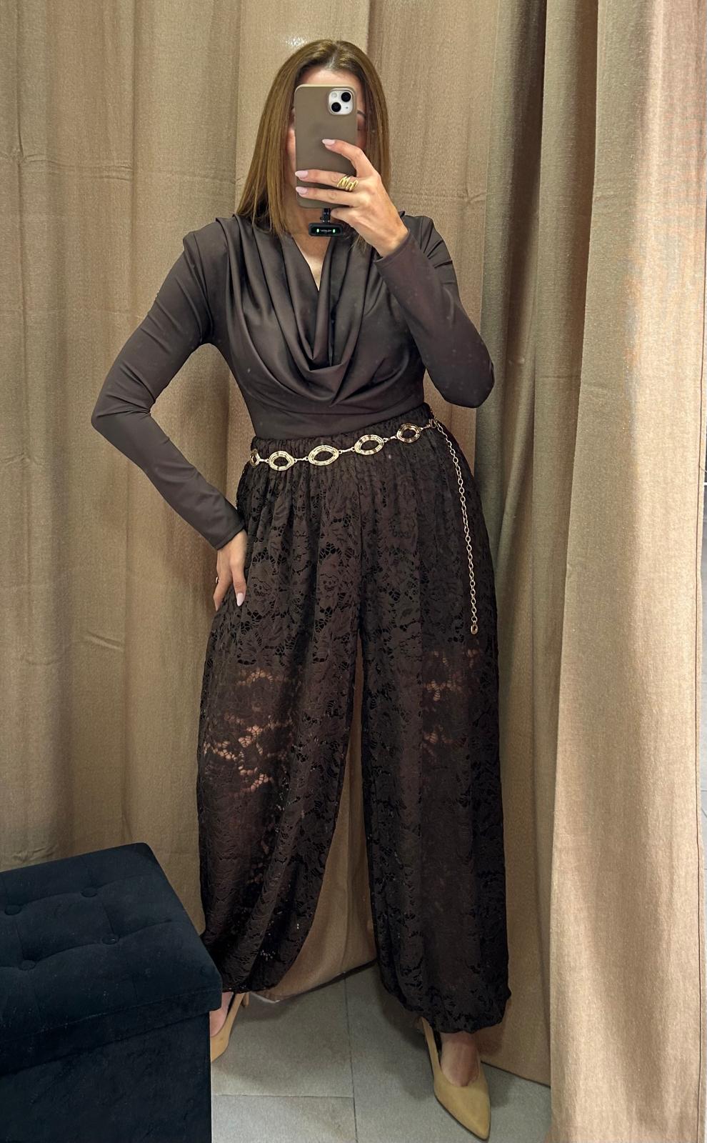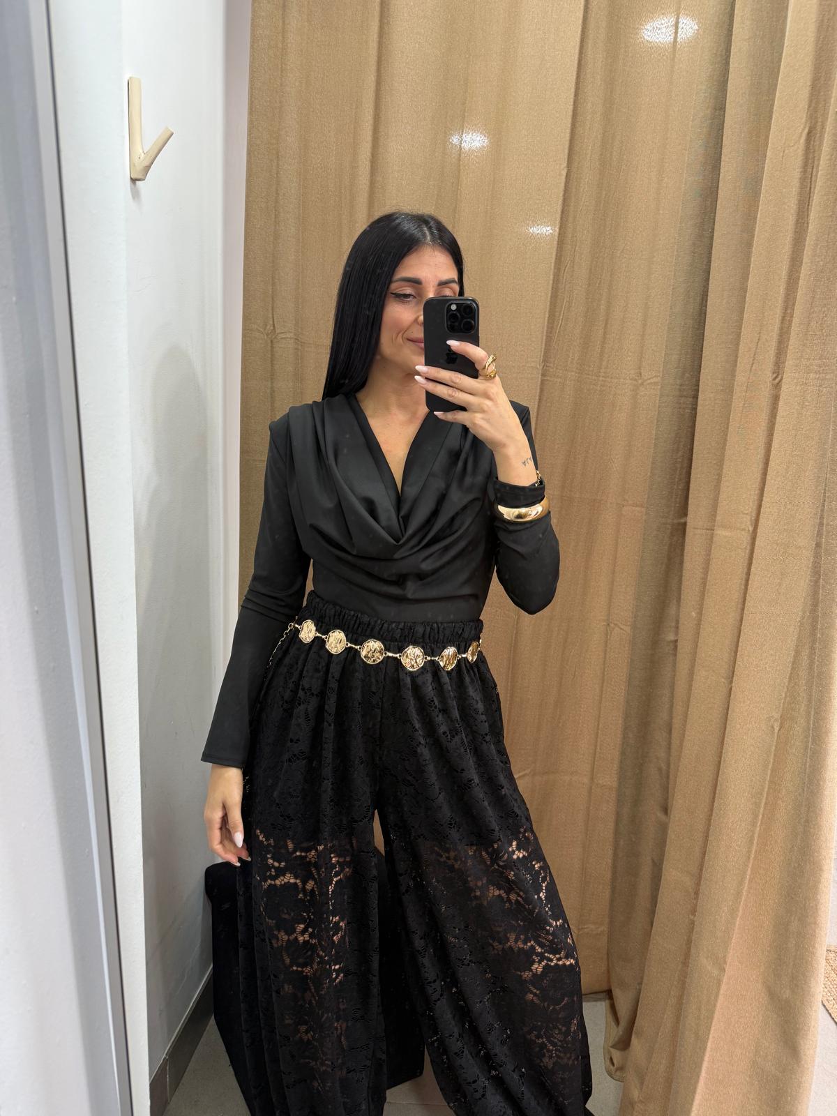 CON CINTURILLA ELASTICA Y COGIDO CON GOMA ABAJO.